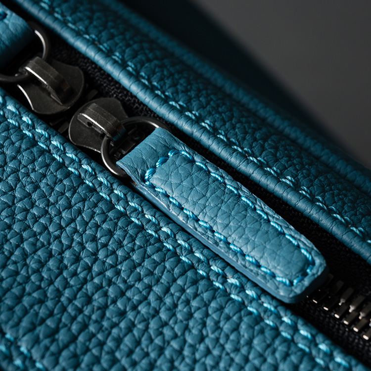 そんな革を惜しげもなく、ファスナー引き手などの細かいパーツすべてに使用したこのバッグは、圧倒的なオーラとクラス感を放つ。