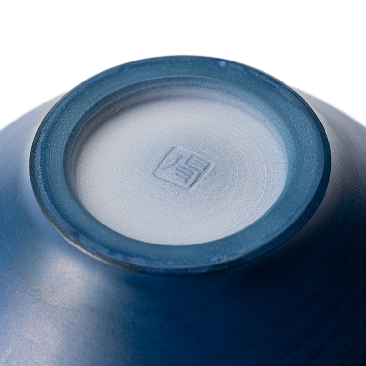 一般的には素朴な肌合いが持ち味なやちむんの中にあって、この青は非常に特殊。色と線から生まれる緊張感も独特で、姿勢を正したくなるほどに洗練されている。