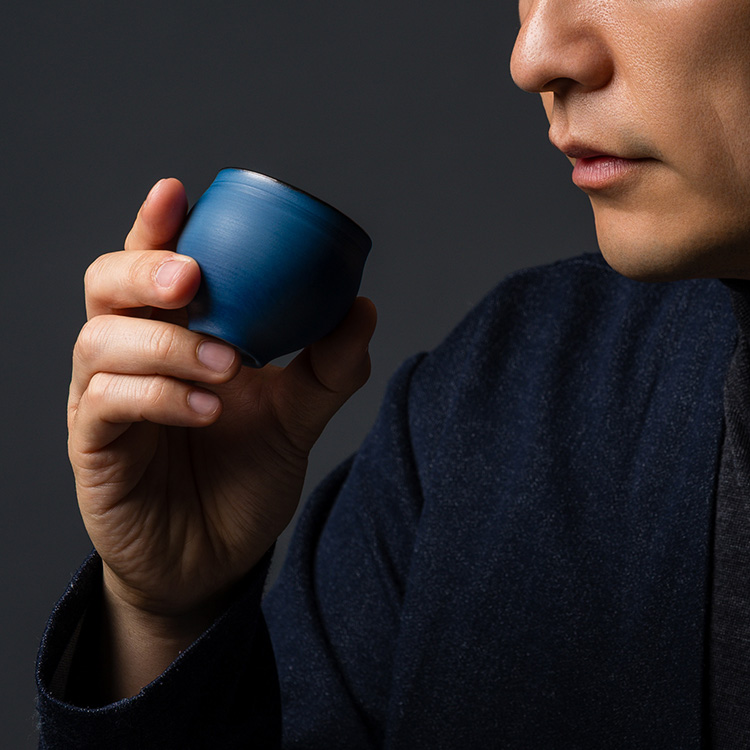 ボリュームのある曲線の美しさを強調したデザインが呼応しており、一対の酒器として揃えて使うと美しい。酒器としても、体験としても、格別のブルーシルエットをぜひ日常に迎え入れていただきたい。もちろんプレゼントに選んでも最高だ。