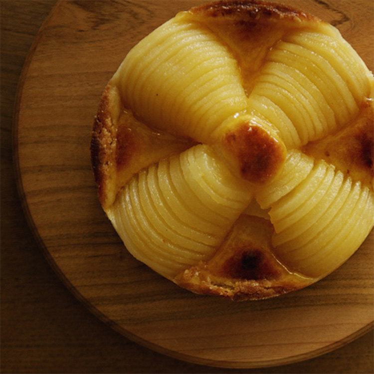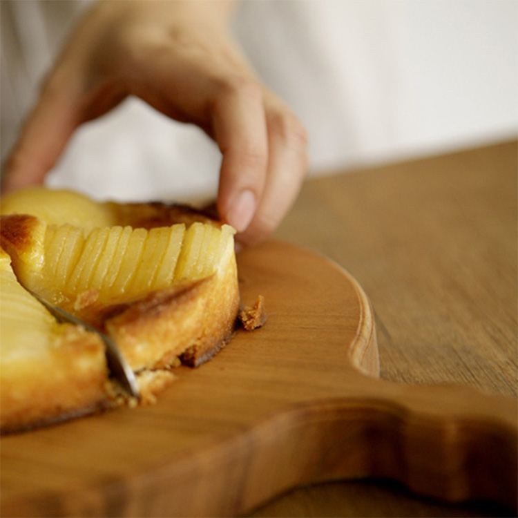丸いカッティングボードは、ピザや丸い形のパン、ホールのタルトや直径21cmの7号ケーキをカットするのにおすすめ。パーティーにも映える。