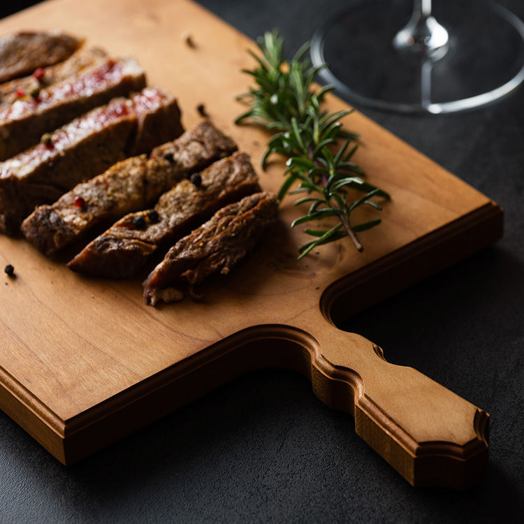 パンやフルーツ、チーズなどを切るのはもちろん、木製プレートとしてお肉料理を盛り付ければレストランのような一皿に。